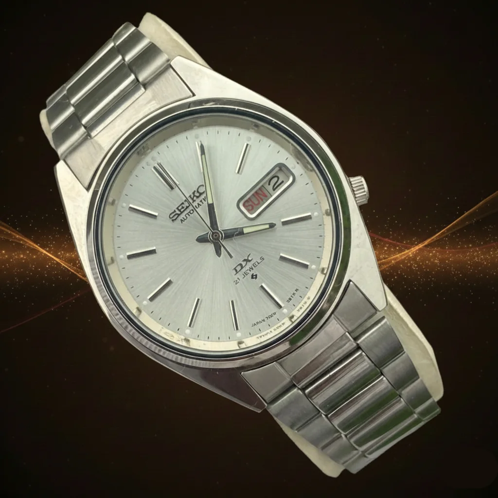 Experience the pinnacle of classic Japanese style with this Seiko DX featuring a brilliant White Sunburst dial. Powered by a reliable 21-jewel automatic movement, this “Deluxe” edition timepiece offers a sophisticated and clean look, complete with polished silver indices and a robust stainless steel build for the modern gentleman.